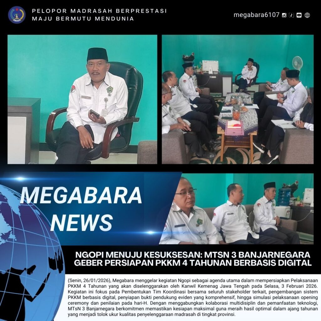 (Senin, 26/01/2026), Megabara menggelar kegiatan Ngopi sebagai agenda utama dalam mempersiapkan Pelaksanaan PKKM 4 Tahunan yang akan diselenggarakan oleh Kanwil Kemenag Jawa Tengah pada Selasa, 3 Februari 2026. Kegiatan ini fokus pada Pembentukan Tim Koordinasi bersama seluruh stakeholder terkait, pengembangan Read More …