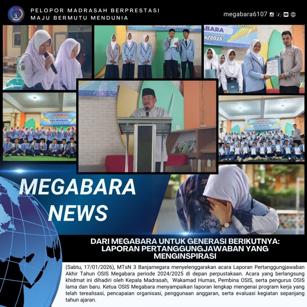(Sabtu, 17/01/2026), MTsN 3 Banjarnegara menyelenggarakan acara Laporan Pertanggungjawaban Akhir Tahun OSIS Megabara periode 2024/2025 di depan perpustakaan. Acara yang berlangsung khidmat ini dihadiri oleh Kepala Madrasah, Wakamad Humas, Pembina OSIS, serta pengurus OSIS lama dan baru. Ketua OSIS Megabara Read More …