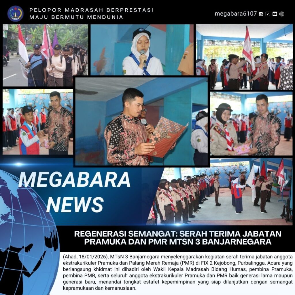 (Ahad, 18/01/2026), MTsN 3 Banjarnegara menyelenggarakan kegiatan serah terima jabatan anggota ekstrakurikuler Pramuka dan Palang Merah Remaja (PMR) di FIX 2 Kejobong, Purbalingga. Acara yang berlangsung khidmat ini dihadiri oleh Wakil Kepala Madrasah Bidang Humas, pembina Pramuka, pembina PMR, serta Read More …