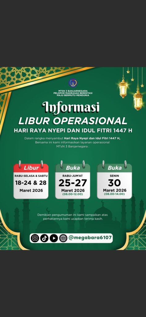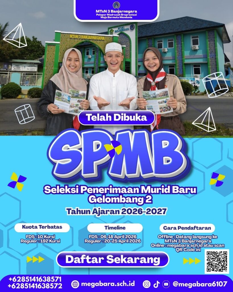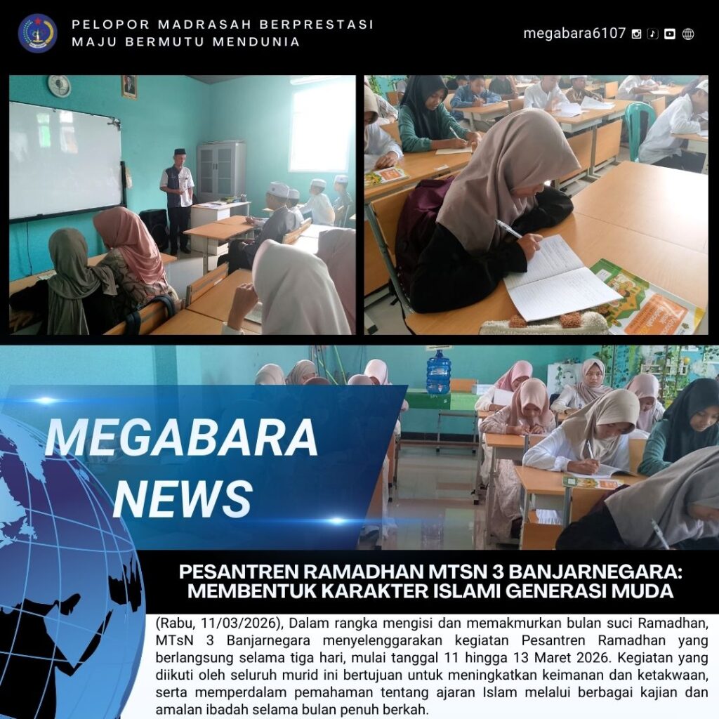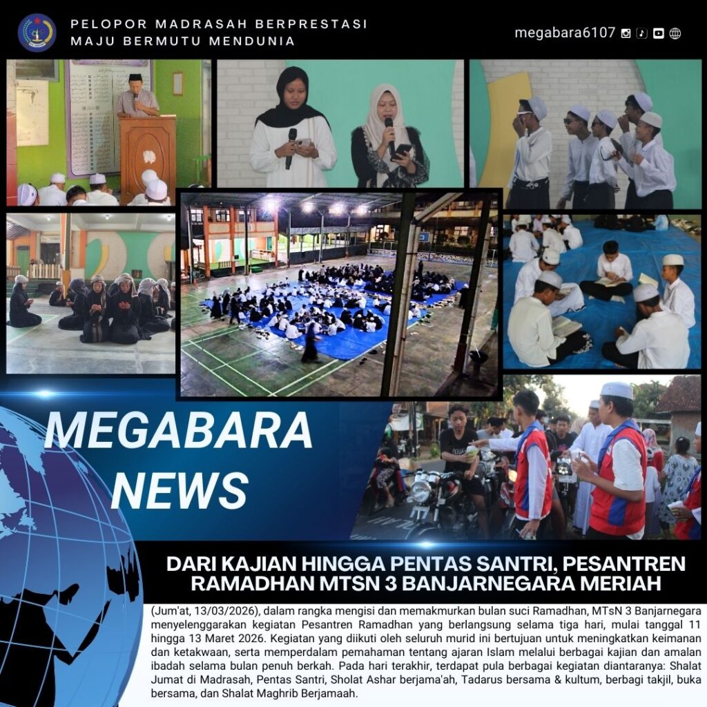 (Jum’at, 13/03/2026), dalam rangka mengisi dan memakmurkan bulan suci Ramadhan, MTsN 3 Banjarnegara menyelenggarakan kegiatan Pesantren Ramadhan yang berlangsung selama tiga hari, mulai tanggal 11 hingga 13 Maret 2026. Kegiatan yang diikuti oleh seluruh murid ini bertujuan untuk meningkatkan keimanan Read More …