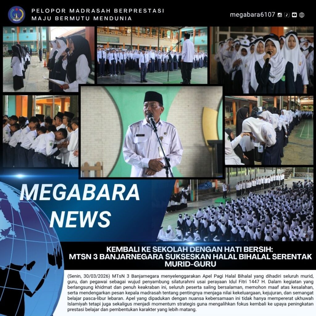 (Senin, 30/03/2026) MTsN 3 Banjarnegara menyelenggarakan Apel Pagi Halal Bihalal yang dihadiri seluruh murid, guru, dan pegawai sebagai wujud penyambung silaturahmi usai perayaan Idul Fitri 1447 H. Dalam kegiatan yang berlangsung khidmat dan penuh keakraban ini, seluruh peserta saling bersalaman, Read More …