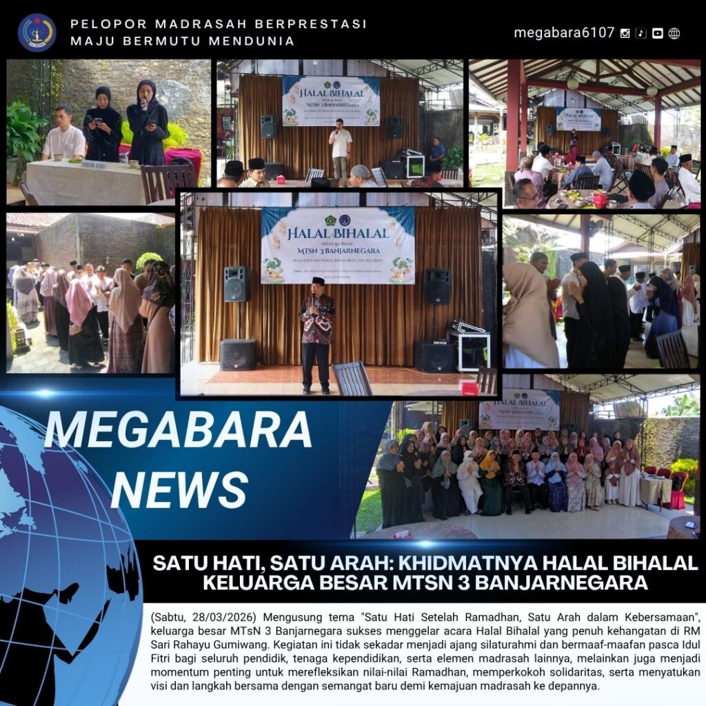 (Sabtu, 28/03/2026) Mengusung tema “Satu Hati Setelah Ramadhan, Satu Arah dalam Kebersamaan”, keluarga besar MTsN 3 Banjarnegara sukses menggelar acara Halal Bihalal yang penuh kehangatan di RM Sari Rahayu Gumiwang. Kegiatan ini tidak sekadar menjadi ajang silaturahmi dan bermaaf-maafan pasca Read More …