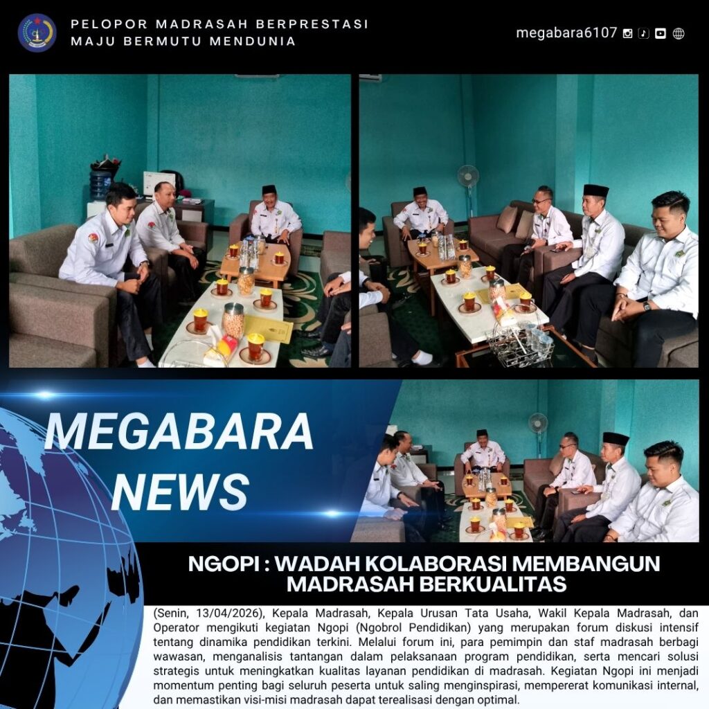 (Senin, 13/04/2026), Kepala Madrasah, Kepala Urusan Tata Usaha, Wakil Kepala Madrasah, dan Operator mengikuti kegiatan Ngopi (Ngobrol Pendidikan) yang merupakan forum diskusi intensif tentang dinamika pendidikan terkini. Melalui forum ini, para pemimpin dan staf madrasah berbagi wawasan, menganalisis tantangan dalam Read More …