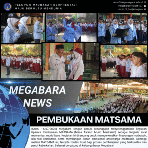 Oleh adminweb / Madrasah / 15 Juli 2025 Banjarnegara – Senin pagi yang cerah menyambut 264 murid baru MTsN 3 Banjarnegara ( MEGABARA ) untuk mengikuti Masa Ta’aruf Murid Madrasah ( MATSAMA ) tahun ajaran 2025/2026. Kegiatan ini sekaligus mengawali semua proses kegiatan belajar mengajar Read More …