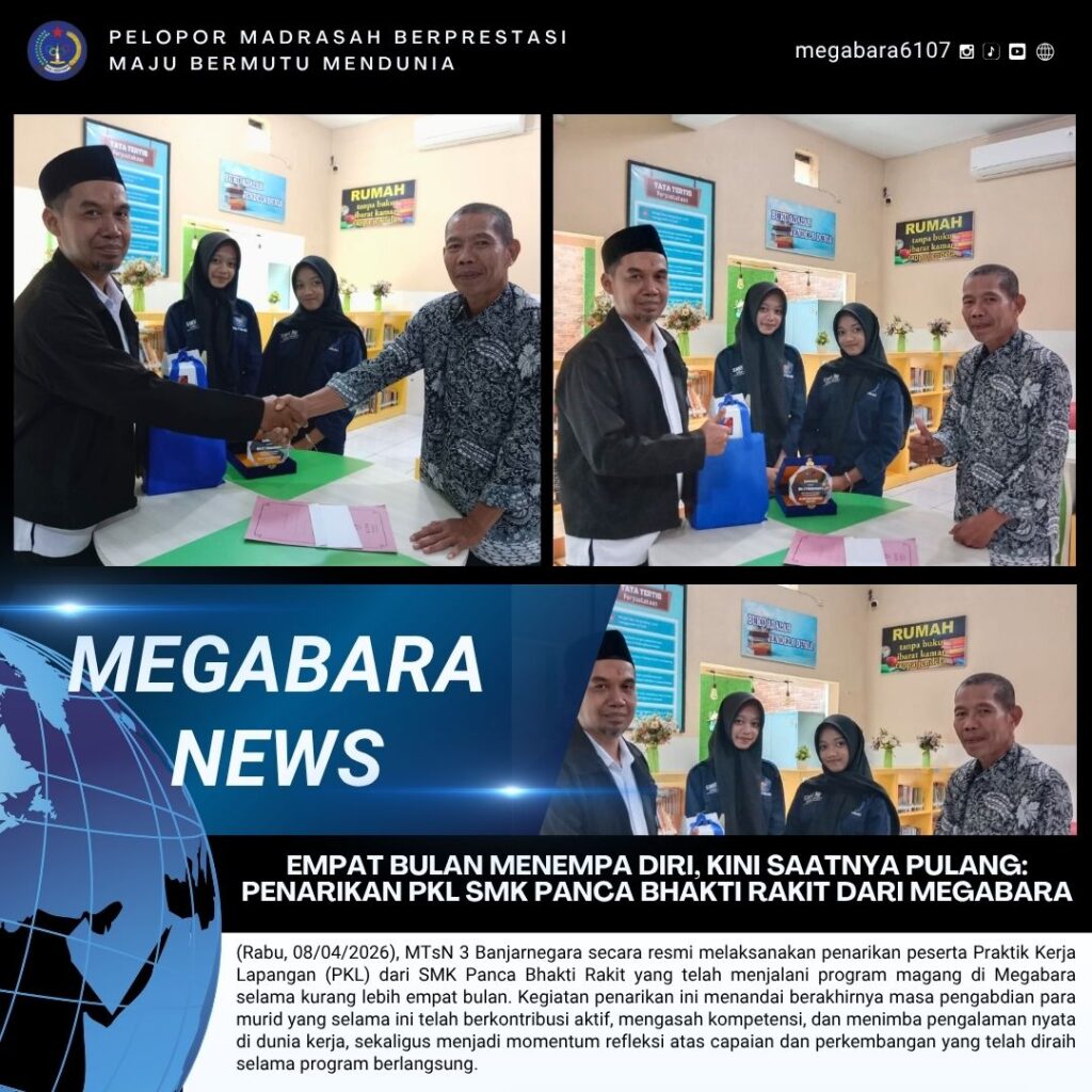 (Rabu, 08/04/2026), MTsN 3 Banjarnegara secara resmi melaksanakan penarikan peserta Praktik Kerja Lapangan (PKL) dari SMK Panca Bhakti Rakit yang telah menjalani program magang di Megabara selama kurang lebih empat bulan. Kegiatan penarikan ini menandai berakhirnya masa pengabdian para murid Read More …