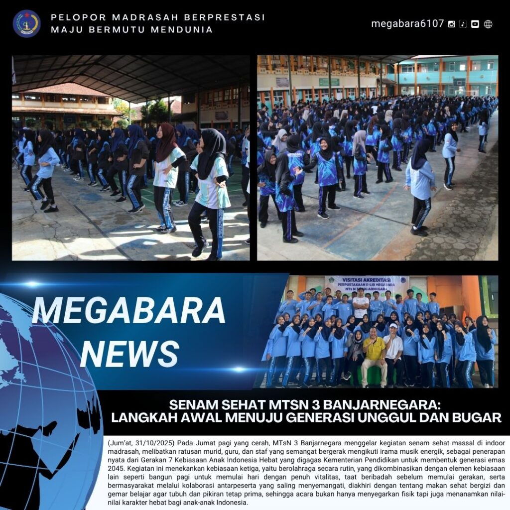 (Jum’at, 31/10/2025) Pada Jumat pagi yang cerah, MTsN 3 Banjarnegara menggelar kegiatan senam sehat massal di indoor madrasah, melibatkan ratusan murid, guru, dan staf yang semangat bergerak mengikuti irama musik energik, sebagai penerapan nyata dari Gerakan 7 Kebiasaan Anak Indonesia Read More …