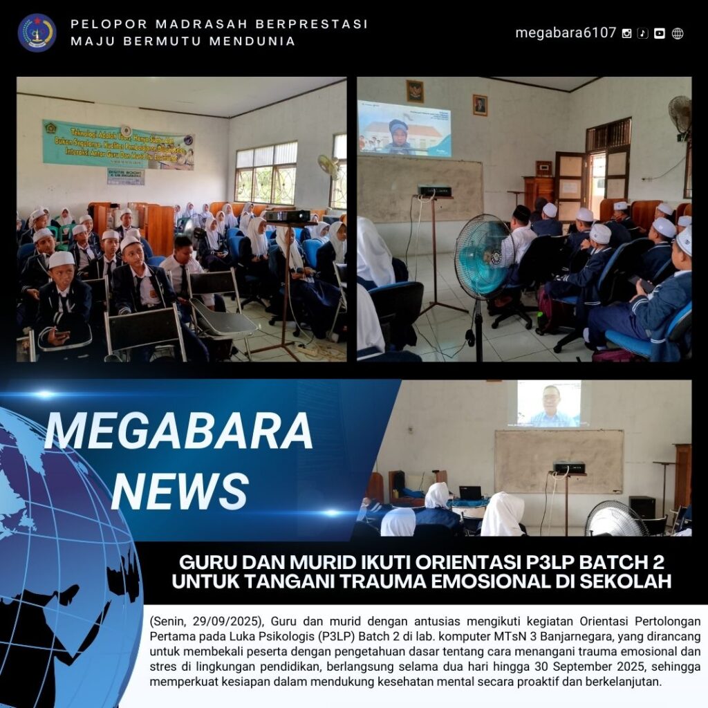 (Senin, 29/09/2025), Guru dan murid dengan antusias mengikuti kegiatan Orientasi Pertolongan Pertama pada Luka Psikologis (P3LP) Batch 2 di lab. komputer MTsN 3 Banjarnegara, yang dirancang untuk membekali peserta dengan pengetahuan dasar tentang cara menangani trauma emosional dan stres di Read More …