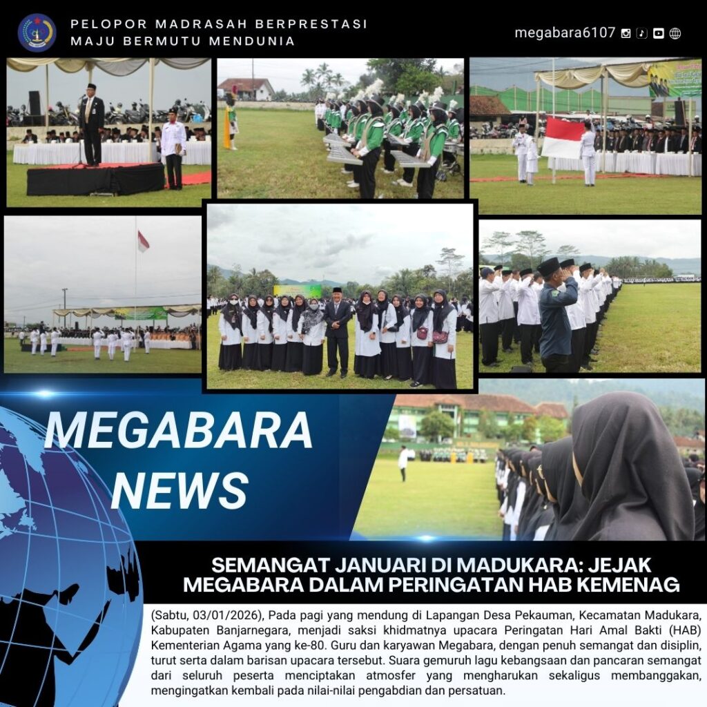 (Sabtu, 03/01/2026), Pada pagi yang mendung di Lapangan Desa Pekauman, Kecamatan Madukara, Kabupaten Banjarnegara, menjadi saksi khidmatnya upacara Peringatan Hari Amal Bakti (HAB) Kementerian Agama yang ke-80. Guru dan karyawan Megabara, dengan penuh semangat dan disiplin, turut serta dalam barisan Read More …