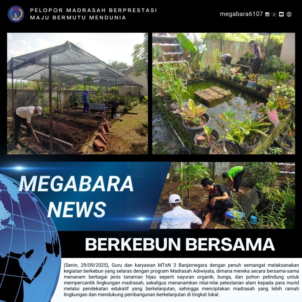 Oleh adminweb / Madrasah / 3 Oktober 2025 Banjarnegara (Humas) – Dalam rangka memperindah lingkungan madrasah dan menjaga kelestariannya, beberapa guru dan karyawan MTsN 3 Banjarnegara dengan penuh semangat melaksanakan kegiatan berkebun guna lakukan inovasi lingkungan madrasah, Senin (29/9). Hari ini inovasi lingkungan terfokus di Read More …